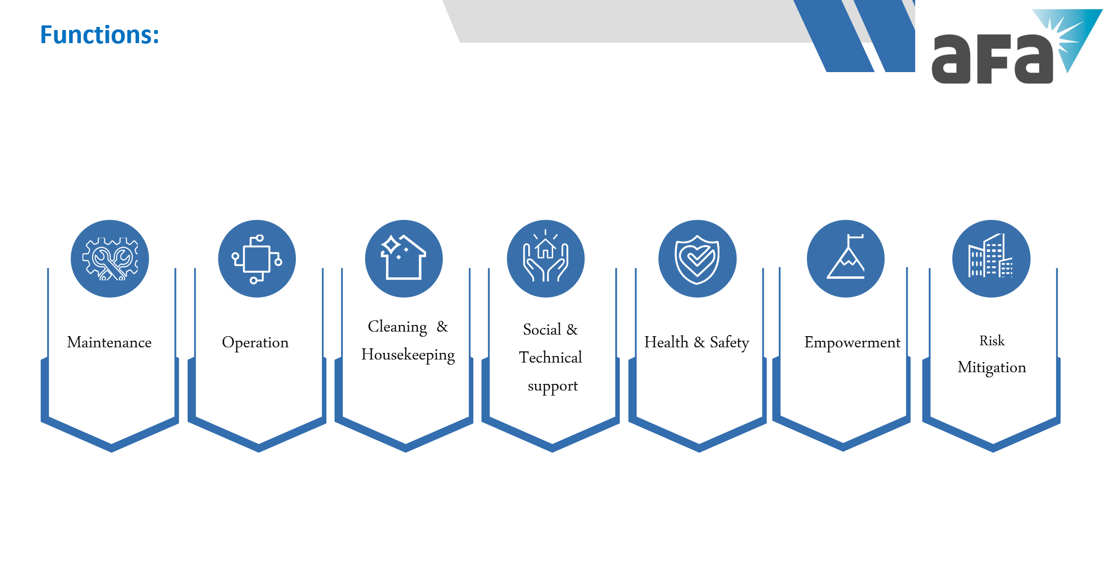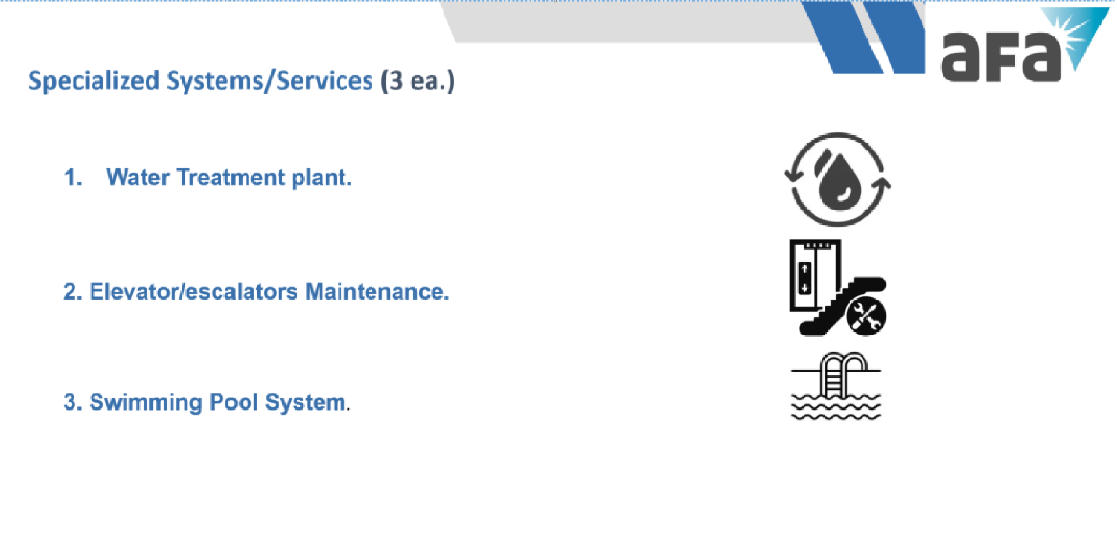 FM Overview | Framework Implementation | Functions | Deliverables FM Services | Hard | Soft | Specialized FM Process | PM | CM | CMMS | Asset Tagging Proposed Organization Chart for project Distribution of cleaners Equipment, Tools & Machinery